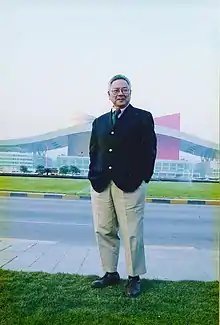 The Civic Center building and area master plan[1] was designed by the American firm Lee/Timchula Architects, which won the international design competition in 1996.[4] Other full submissions were from Arcurban Design and Management Services, Hyayi Design Consultants and Societe de Conception d'Architecture et d'Urbanisme;[6] 2 other firms decided to not submit designs.