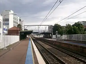 Civic railway station was located on the Newcastle line in New South Wales, Australia. It served the Civic part of Newcastle's central business district, opening on 22 December 1935.[2][3] The station had the smallest signal box in the state to control the Merewether Street level crossing. The signal box closed in July 1992.[4] Civic station closed on 25 December 2014, when the Newcastle line was truncated to terminate at Hamilton.[5] In 2019, Civic was reopened as a park named "Museum Place" due to it being a short distance from Newcastle Museum. The area between the platforms was filled in, and the station buildings remained intact.