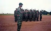 In 1990–1995, the unit included a certain number of exiled Katangese Tigers who wished to return to the Katanga Province.[4] In 1996, the Civil Guard, still commanded by Baramoto, officially consisted of 26,000 men, its budget being equivalent to four times of that of the regular Zairian Armed Forces (FAZ).[1]