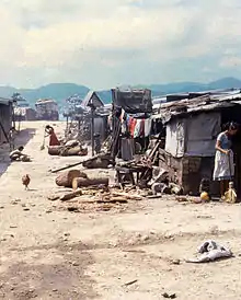 The repression in rural areas resulted in the displacement of large portions of the rural populace, and many peasants fled. Of those who fled or were displaced, some 20,000 resided in makeshift refugee centers on the Honduran border in conditions of poverty, starvation and disease.[111] The army and death squads forced many of them to flee to the United States, but most were denied asylum.[112] A US congressional delegation that, on 17–18 January 1981, visited the refugee camps in El Salvador on a fact finding mission, submitted a report to Congress that found: "[T]he Salvadoran method of 'drying up the ocean' is to eliminate entire villages from the map, to isolate the guerrillas, and deny them any rural base off which they can feed."[113]