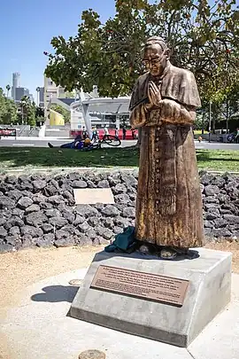 In February 1980, Archbishop Óscar Romero published an open letter to US President Jimmy Carter in which he pleaded with him to suspend the United States' ongoing program of military aid to the Salvadoran regime. He advised Carter that "Political power is in the hands of the armed forces. They know only how to repress the people and defend the interests of the Salvadoran oligarchy." Romero warned that US support would only "sharpen the injustice and repression against the organizations of the people which repeatedly have been struggling to gain respect for their fundamental human rights".[80] On 24 March 1980, the Archbishop was assassinated while celebrating Mass, the day after he called upon Salvadoran soldiers and security force members to not follow their orders to kill Salvadoran civilians. President Carter stated this was a "shocking and unconscionable act".[81] At his funeral a week later, government-sponsored snipers in the National Palace and on the periphery of the Gerardo Barrios Plaza were responsible for the shooting of 42 mourners.[82]