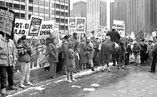 - ↑ The New York Times presented labor union wage demands as a challenge to the country and reported that ruling party politicians feared the resurgence of mass political organizations that had been destroyed by the government's violent repression. The National Federation of Trade Unions was "making tough wage demands", and Christian Democrats said they were "haunted by the memory of 1979, when the same groups were prominent in the near-anarchy that swept El Salvador." But "by mid-1980, the agitation dried up as many street activists joined the guerrillas and others disengaged out of fear for their lives, while the Government imposed the wage freeze and state of siege" amidst "accusations" of human rights abuses. The fear they said was that these subversive groups, who admitted their former affiliation with the political arm of the guerrillas, may try to reestablish the "mass organizations" that were destroyed by the violent repression of strikes and demonstrations in the early 1980s. "Newly Active Unions a Challenge for El Salvador" The New York Times, 16 July 1985