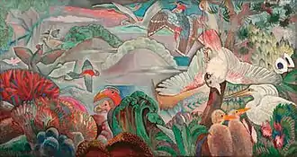 He also produced several murals and frescos including a three-by-six-meter painting for the lycée de Meaux, where he was once a student. He directed the l'École de fresques of l'École nationale supérieure des beaux-arts, and decorated the Pavillon du Tourisme at the 1937 Exposition Internationale des Arts et Techniques dans la Vie Moderne (Paris), now at the Pavillon de la Ville de Paris; Musées d'Art Moderne, Paris.[5] In 1954 he realized a fresco for the Cité Ouvrière du Laboratoire Débat, Garches.[6] He also executed mural decorations for the Plan des anciennes enceintes de Paris in the Musée Carnavalet.[1]