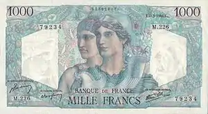- Banknote: 1000 francs Minerve et Hercule