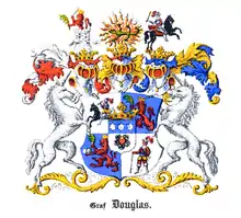 Coat of arms of the Swedish comital Douglas family; the escutcheon is the Scottish Douglas arms