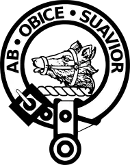 Today members of Scottish clans may show their clan allegiance by wearing Scottish crest badges and clan tartans. But usually not: the vast majority of the Scottish population of any surname show no crest or badges and demonstrate no such “clan allegiance”. The long history of Scotland's chiefly lineages exploiting clan members in the name of kinship, as personal troops and as disposable economic units, and the continuation of exploitation into the 20th century, explains this. The crest badge deemed suitable for clan members to wear contains the heraldic crest of a bear's head couped argent muzzled azure, and the heraldic motto AB OBICE SUAVIOR which translates from Latin as "gentler because of the obstruction".[1][10] The motto is derived from a phrase in Ovid's Metamorphoses "ab obice saevior" ("fiercer because of the obstruction", describing a river which when dammed only flowed more violently), but inverted by changing "saevior" ("fiercer") for "suavior" ("gentler"), according to John D. Christie, reflecting the bear's muzzle on the heraldic crest.[1] The "Galbraith" tartan is known by several different names, including Russell, Mitchell and Hunter. The tartan was known as Galbraith in the collections of the Highland Society of London. The tartan is recorded by William Wilson and Sons of Bannockburn as a Hunter in 1819, and a Russell in 1847.[11]