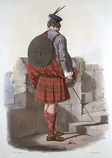 Along with most of the other clans of the Chattan Confederation, the MacGillivrays were staunch Jacobites in both the Jacobite rising of 1715 and the Jacobite rising of 1745.[6] During the 1745 rising, the chief of Mackintoshes and clan Chattan was however a serving officer in the Black Watch regiment of the British Army, but his wife, Lady Anne Mackintosh (née Farquharson), rallied the Chattan Confederation in support of the Jacobites and placed chief Alexander MacGillivray in command of the clan Chattan regiment.[6] Alexander MacGillivray was killed leading his clan at the Battle of Culloden in 1746 along with many of his followers.[6] A graveyard at Dunlichity commemorates the many MacGillivrays who fell in the battle.[6] After Culloden, many MacGillivrays emigrated across the Atlantic, where many of them were successful, particularly as traders.[6]