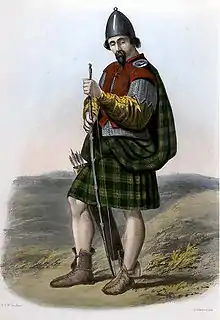 Three names identified as belonging to the Clan MacLaren are found in the Ragman Rolls of 1296, giving allegiance to Edward I of England.[2] These are Maurice of Tiree, Conan of Balquhidder and Leurin of Ardveche.[2] During the Wars of Scottish Independence it is probable that the Clan MacLaren fought for Robert the Bruce at the Battle of Bannockburn, under the standard of Malise, Earl of Strathearn in 1314, where the English were defeated.[2] The last Gaelic Earl of Strathearn was deprived of his title in 1344 when the MacLarens came under pressure from their more powerful neighbours.[2]