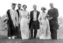 Photograph taken by Frank J. Sprague at the wedding of Clemens and Ossip Gabrilowitsch. From left: Mark Twain, Jervis Langdon Jr., Clara Clemens , Ossip Gabrilowitsch, Jean Clemens, Joseph Twichell.