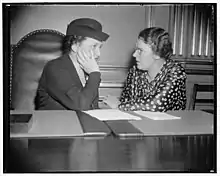 Frances Perkins and Clara Mortenson Beyer, assistant director of the Division of Labor Standard, Department of Labor, and labor writer.
