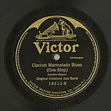 The original RCA Victor 1918 recording by the Original Dixieland Jass Band is described as a "small-combo ensemble piece with strong links to the march tradition".[3] It was dominated by Larry Shields's solo on clarinet, accompanied by Henry Ragas.[4] "Clarinet Marmalade" was one of the landmark compositions of early jazz and was a very popular jazz standard in the 1920s; the Original Dixieland Jass Band's sound was widely emulated during this period.[5] In 1919, the song became a staple of the touring James Reese Europe band.[3]