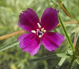 Clarkia purpurea is a species of wildflower known by the common names winecup clarkia, winecup fairyfan, and purple clarkia.