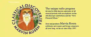 - ↑ "Radio host shares love of classical music" by Candace Braun from The Ewing Observer, February 01, 2006 from Classical Discoveries and Marvin Rosen in The Press and Internet.