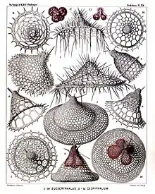 - ↑ Entwurf eines Radiolarien-systems auf grund von studien der Challenger-Radiolarien. E Haeckel, Jenaische Zeitschrift für Naturwissenschaft, 1881