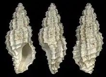 | Shells of † Clathromangelia quadrillum (museum specimens at MNHN, Paris) | |