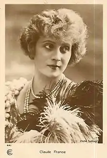 Claude France (March 9, 1893 – January 3, 1928) born in Emden, Germany; was a German-born French actress. She was born Jane Joséphine Anna Françoise Wittig. She was discovered by Leon Gaumont who was impressed with her beauty. She had worked as a French spy, and was connected with the denunciation of Mati Hari, with whom she had a friendly relationship. For reasons not clear she committed suicide by gas poisoning at her home in Paris.