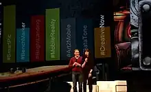 In 2010, Winkleman became co-host of the Sunday night results show of Strictly Come Dancing, presenting alongside Tess Daly.[26] In 2014, Winkleman's role on Strictly Come Dancing expanded to presenting the main show, following the departure of Bruce Forsyth.
