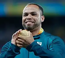 Batista was born able bodied, but after a road accident in May 2005 part of his left leg needed to be amputated. While in hospital he was visited by para-athletic organisations offering sport as a way to help in his recovery. He refused to accept their invitation for over two years, before changing his mind. In 2011 he was part of the Brazilian team which entered into the 2011 Parapan American Games. He entered the javelin and discus, both in the joint F57/58 class, winning the javelin and coming third in the discus.[2] He followed this by being selected for the 2012 Summer Paralympics in London, entering all three throwing events in the F57/58 class. In the discus, he threw a distance of 45.90m, which did not convert to enough points to see him onto the podium, finishing instead at fourth place.[3] In the shot put he finished seventh. His strongest event, the javelin, saw him record a distance of 45.38m, a new world record, only to see his rival, Iran's Mohammad Khalvandi, also throw a world record as a F58 athlete to snatch the gold from Batista dos Santos by 20 points.[4]