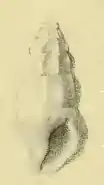 A pure white, shining, massive little shell with a fusiform shape and 6 - 7 whorls. It shows uniform straight longitudinal ribs. The surface is nearly smooth and shining. The ribs of the last three whorls are continuous, and about eight in number. The aperture is ovate. The siphonal canal is short.[3]