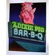 Clay Huffman's work has been compared to that of fellow Washingtonian, Joseph Craig English.[17] One of Clay's most recognizable pieces "Pigmentation on Powhatan" (nicknamed "Dixie II" or "Dixie Pig"), can be seen at ClayHuffman.com. His work "Last Call" can be seen at Sunforged Studios.[18] Unfortunately, online representations of his pieces are rare although his popularity with collectors has grown in recent years.[19]