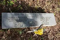 The 132 acre "Poor Farm" was established in 1896. From 1935 to 1942 the farm was a Civilian Conservation Corps (CCC) camp and the County Farms was closed.[3] The cemetery was listed on the National Register of Historic Places in 2005.[1]