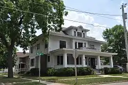 The Clement B. Gingrich House is a historic building located in La Porte City, Iowa, United States. Gingrich grew up on a nearby farm, and was a teacher before he operated the family's creamery. He hired Waterloo architect J.G. Ralston to design this house, which was completed in 1916. Architecturally, the two-story frame structure is "transitional" in its design.[2] It features Georgian cube massing, with Prairie School, American Craftsman and Colonial Revival influences. After Ella Gingrich died in 1943 the house was sold. It served as the rectory for Sacred Heart Catholic Church from 1946 to 1973. During that time the basement was used for a daily Mass chapel and catechism classes. Twenty-seven interdenominational weddings were celebrated in the house.[2] After its use as a rectory it reverted to being a single-family home. It was listed on the National Register of Historic Places in 1996.[1]