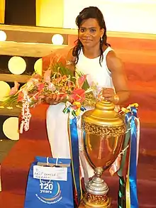 In 2014, she won the Seychelles Sportswoman of the Year Award for the second consecutive year. Eleven years earlier she had won the Young Female Athlete of the Year Award,[9] and she has twice won the Seychelles Female Lifter of the Year in 2009 and 2013.[10]