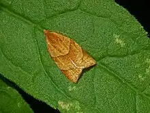 The wingspan is 17โ20 mm. The forewings with a hardly sinuate, nearly vertical termen. The costal fold extends from the base to before middle. The ground colour is pale ochreous, somewhat brownish-strigulated. The basal patch is brownish dorsally and the central fascia ochreous-brown, it's anterior edge nearly straight. The costal patch is ochreous-brown, emitting a straight stria. The hindwings are whitish, apex ochreous-tinged, dorsal half light grey. The larva is grey-green; head and plate of 2 brown.[2]