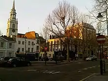 Clerkenwell St James was an ancient parish in the Finsbury division of the Ossulstone hundred of Middlesex.[20] Part of the parish of St James was split off as the parish of St John in 1723. However, for civil matters they remained a single parish. The parish vestry became a nominating authority to the Metropolitan Board of Works in 1855.