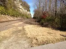 Cliff Cave Park is a 525-acre public park located in St. Louis County, Missouri.[1] The park is owned and operated by the St. Louis County Department of Parks and Recreation.[1][2] It is named after Cliff Cave, a natural cave located in the park that is a historical and archaeologic site.[3] The park contains woodlands, wetlands, and rocky hillsides and is adjacent to the Mississippi River.[4] It has three trails: the Mississippi Trail, the Spring Valley Trail, and the River Bluff Trail.[2][4] The Riverside Shelter overlooks the Mississippi River.[4] An active train track runs through the park.[5] Cliff Cave Park is part of the Mississippi River Greenway.[6][7] The park won the "Best View of the Mississippi" award in 2009, which it was granted by The Riverfront Times.[1][8]