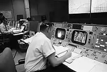 ![]() Charlesworth at his console during the Apollo 8 lunar mission, December 21, 1968 | |