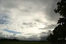 The climate of Puerto Rico in the Köppen climate classification is predominantly tropical rainforest. Temperatures throughout the year are warm to hot, averaging near 85 °F (29 °C) in lower elevations and 70 °F (21 °C) in the mountains. Easterly trade winds pass across the island year round while the rainy season stretches from April into November.[1] The relatively cool trade winds are blocked by the mountains of the Cordillera Central which causes rain shadows and sharp variations in the temperature and wind speed over short distances. About a quarter of the average annual rainfall for Puerto Rico occurs during tropical cyclones, which are more frequent during La Niña years.