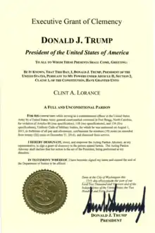 On November 15, 2019, President Donald Trump issued a full pardon to Lorance, and he was released from prison after serving six years.[1][13][44] Fox News covered Lorance extensively prior to the pardon. Fox News hosts Sean Hannity and Pete Hegseth reportedly played a leading roles in persuading Trump to pardon Lorance.[7][45] Many Republican members of Congress had urged Trump to grant executive clemency.[44] Trump described Lorance as a hero operating in difficult circumstances.[6] The soldiers of his platoon described their disbelief and compared it to a nightmare. Military officials worried that the decision to overturn a case that had already been adjudicated in the military courts sent a signal that war crimes were not worthy of severe punishment.[46]