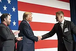 - ↑ "Trump brought on stage Army 1st Lt. Clint Lorance and Maj. Mathew Golsteyn, who Trump pardoned last month for cases involving war crimes. Lorance was serving a 19-year sentence for ordering his soldiers shoot at unarmed men in Afghanistan, and Golsteyn was to stand trial for the 2010 extrajudicial killing of a suspected bomb maker". Task & Purpose. 2019-12-10. Retrieved 2021-04-30.