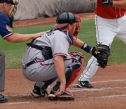 ![]() Sammons playing for the Gwinnett Braves, Triple-A affiliates of the Atlanta Braves in 2008 | |