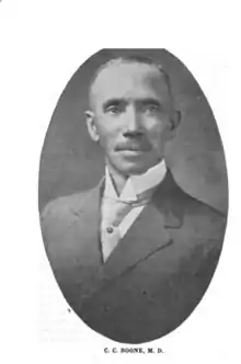 Clinton Caldwell Boone was born in Hertford County, North Carolina on May 9, 1872 to Charlotte (Chavis) Boone and the Reverend Lemuel Washington Boone, a minister.[1] His parents were known as early African-American leaders in the Baptist church, who were committed to missionary work and education.