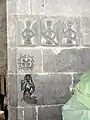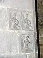 The earliest part of the church dates back to around 1180.[1] Its doorway is the crowning achievement of Hiberno-Romanesque style. It is in six orders, and has a large variety of motifs, animal heads, foliage, human heads etc. Above the doorway is a pointed hood enclosing triangles alternating with bizarre human heads, and below this is an arcade enclosing more human heads. The early 13th century east windows in the chancel is an example of a late Romanesque windows. The chancel arch was inserted in the 15th century, and is decorated with angels, a rosette and a mermaid carrying a mirror. The supporting arches of the tower at the west end of the church are also decorated with 15th century heads, and the innermost order of the Romanesque doorway was also inserted at this time. The sacristy is also 15th century. The church had a Romanesque south transept, which is now in ruins, and a Gothic north transept, which has been removed. In the Roman Catholic church one mile to the south is a 14th-century wooden statue of the Madonna and Child, and on the roadside near this church is a 16th-century tower-house.