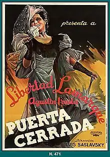Closed Door (Spanish:Puerta cerrada) is a 1939 Argentine drama film directed by John Alton and Luis Saslavsky. The film stars Libertad Lamarque, Angelina Pagano and Agustín Irusta.[1]