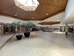 On November 15, 1956, Cloverdale Mall opened with 34 stores such as Dominion, S.S Kreesge, Laura Secord Chocolates, Tip Top Tailors, United Cigar Stores as well as the Bank of Nova Scotia and Canadian Bank of Commerce.[1] The centre of the plaza was an open-air concrete courtyard. A Morgan's anchor store of two floors joined in August 1960 as part of an expansion of the shopping centre.[2] In the 1960s, following the purchase of Morgan's by the Hudson's Bay Company, the Morgan's store was converted into The Bay. In the 1980s, Cloverdale Mall was converted into an enclosed mall and expanded.