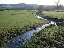 The River Clun, which flows through the parish from the north to the south, divides the parish into two almost equal parts. The parish borders the county of Herefordshire to the south.[10] The northwest corner of the parish (the locality of Hope, on the east slope of Clunbury Hill) falls within the Shropshire Hills AONB, but the village itself does not. The highest point in the parish is Goat Hill (in the northeast corner) at 312 metres (1,024 ft); the lowest point is where the Clun exits the parish (and county) south of Broadward, at 122 metres (400 ft).[10]