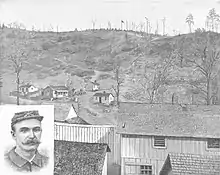 On August 13, 1892, free miners in Grundy County tore down the TCI stockade in Tracy City, and on August 15 convicts were removed from the TCI stockade at Innman in Marion County.[8] These actions reignited resentment in East Tennessee, and on August 17 a group of miners led by John Hatmaker attacked the TCI stockade at Oliver Springs but were beaten back by the guards. Shortly afterward a larger group of miners reconvened at the stockade, and its guards finally surrendered. The stockade was burned, and the convicts were put on a train and sent to Nashville. The following day Anderson was captured at Coal Creek, and the miners ordered Fort Anderson's second-in-command, Lieutenant Perry Fyffe, to surrender. After Fyffe refused, the miners charged the fort, killing two militiamen but failing to capture the position.[9]