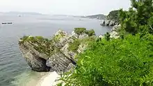 Coastal erosion is the loss or displacement of land, or the long-term removal of sediment and rocks along the coastline due to the action of waves, currents, tides, wind-driven water, waterborne ice, or other impacts of storms.[1][2] The landward retreat of the shoreline can be measured and described over a temporal scale of tides, seasons, and other short-term cyclic processes.[3] Coastal erosion may be caused by hydraulic action, abrasion, impact and corrosion by wind and water, and other forces, natural or unnatural.[3]