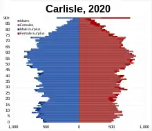 - ↑ UK Census (2011). "Local Area Report – Carlisle Local Authority (E07000028)". Nomis. Office for National Statistics. Retrieved 27 March 2021.