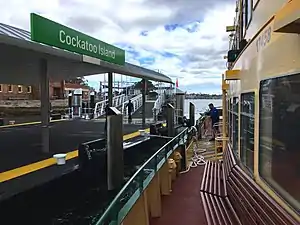 In April 2007, Sydney Ferries began operating limited services to Cockatoo Island after the island reopened for tourists.[4] Services from Circular Quay served Cockatoo Island after leaving Greenwich Point and then proceeded to Woolwich where they terminated.[5] By December 2010, the calling pattern had been altered with ferries from Greenwich Point proceeding to Woolwich and then to Cockatoo Island to terminate.[6]