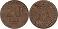 20 lei | 26 mm | 6.0 g | reeded | wreath, denomination | 1942-1944 | ||||