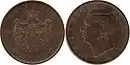 1 leu | 21 mm | 3.5 g | Copper 75%, Nickel 25% | Milled | "BUN PENTRU 'VALUE'" ("Good for 'value'"), wheat wreath | State title, Middle coat of arms, ***, year of minting, *** | 1924 | 1 June 1940 | 31 March 1941 (unofficial, BNR accepted the change until mid-1942) |