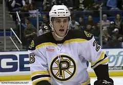 After three games with the Avalanche, Cohen was returned to Lake Erie before being traded to the Boston Bruins for Matt Hunwick on December 29, 2010.[14][17] On April 14, 2011, Cohen was called up by the Boston Bruins as a spare for the playoffs, but he did not play so his name was not engraved on the Stanley Cup as a result when the team won the 2011 Stanley Cup Playoffs.[18] The Bruins did, however, include Cohen in the official Stanley Cup photo, and he was presented with a Stanley Cup ring.[18]