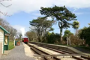 Trains approach the railway station from the north on a right curve and depart in a southerly direction in a straight section that lasts until the level road crossing via Kentraugh Farm occupational crossing. The railway station is located on the outskirts of the village, and the houses that back onto the perimeter of the railway station on one side are that of the local authority. The village has its own public house, the Colby Glen which is visible in the trees to the north of the railway station, and the housing can be seen from the passing trains. In 2011 the local football club established new headquarters in the field to the seaward side of the railway station, for which a new automated level crossing was installed at the northern extent of the railway station. This was the first new level crossing on the railway for over a century. The railway station is a mandatory stopping place and one of the busiest on the line for local traffic, popular with locals who travel by train to do their shopping in either Douglas or Port Erin.