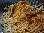 Shanghai cold noodles, originating in Shanghai, China, consist of Shanghai-style noodles[4] that are steamed, and then cooked to make them chewier.[4] Peanut butter and other seasonings are added to this dish, giving the noodles more flavor.[4][5]