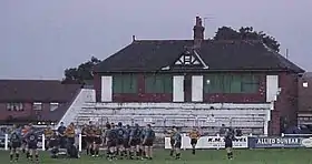 The cricket pavilion was finally demolished in 2003, while the hockey club built a new building including changing rooms, lecture room, offices and storage space. The rugby club played its last game on the ground in April 2004, subsequently folding as a club and disposing of its assets, including the Fleur de Lys pavilion and the temporary tip-up seating. The rugby pitch was subsequently used by local football teams before Wakefield FC moved to the ground for the start of the 2006/7 season, making improvements to the perimeter fencing, external fencing and installing a turnstile block.